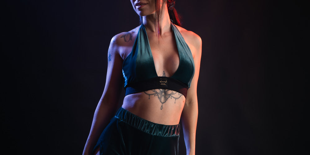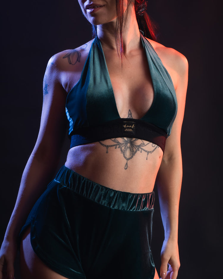 Peony Bra Double Funtion liivi tanssiin Upea liivi douple function ominaisuudella, voit käyttää sitä suoraan tai edestä risteävänä. Tummanvihreä Emerald Green sametti on ylellisen pehmeä ja kaunis kangas. Voit valita tuotteen irroitettavilla toppauksilla tai ilman toppauksia. Peony Bra:ta valmistetaan kahdessa mallissa; Bikini & Sport....