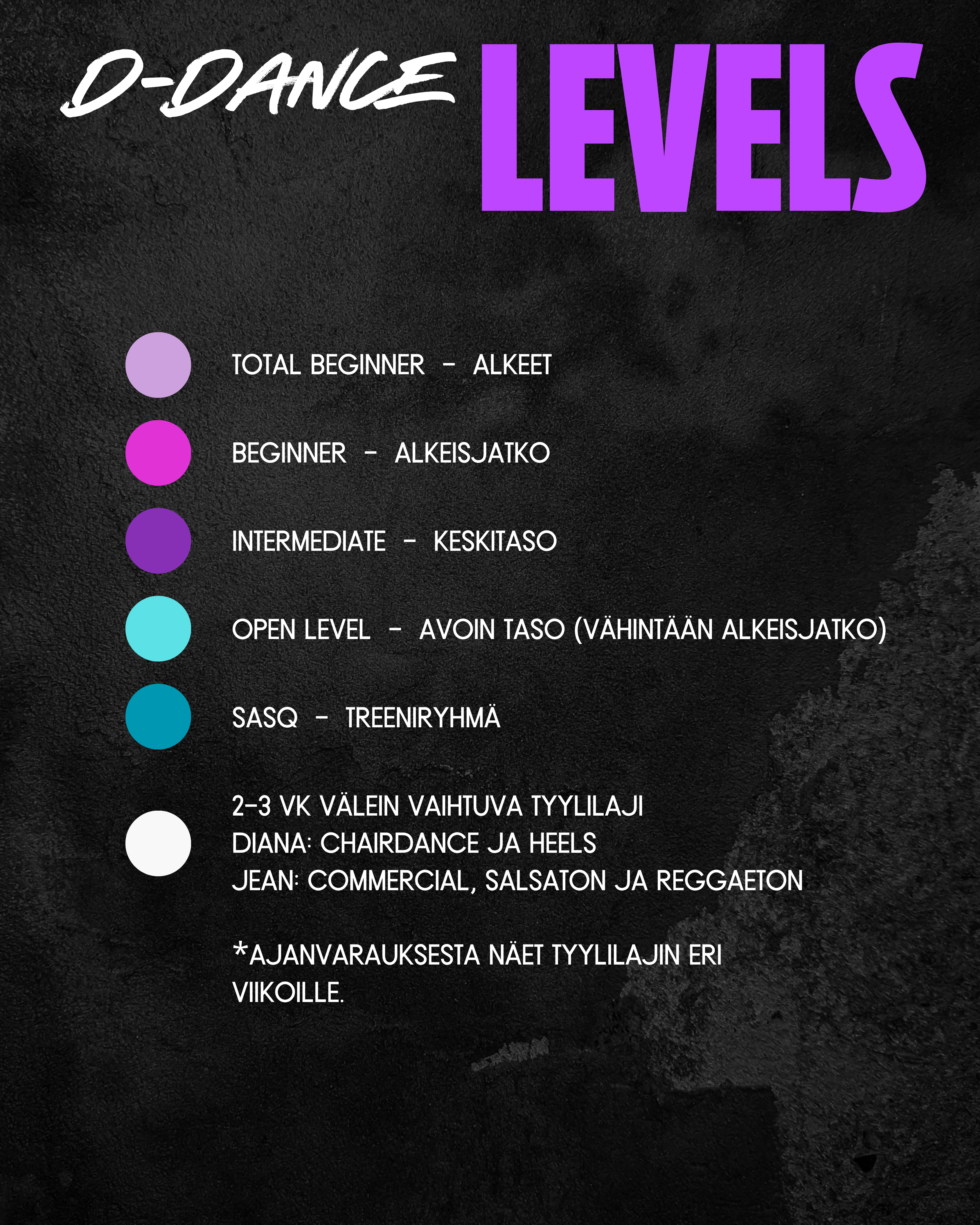 Season includes 19 weeks of teaching dance & stretching classes. With UNLIMITED card you dance as much as you can. Presale prices for seasonal cards are valid until 15.12., and sign up for the season is open until 31.12. Students joining tryout week can still by seasonal cards with regular pricers until 14.1.