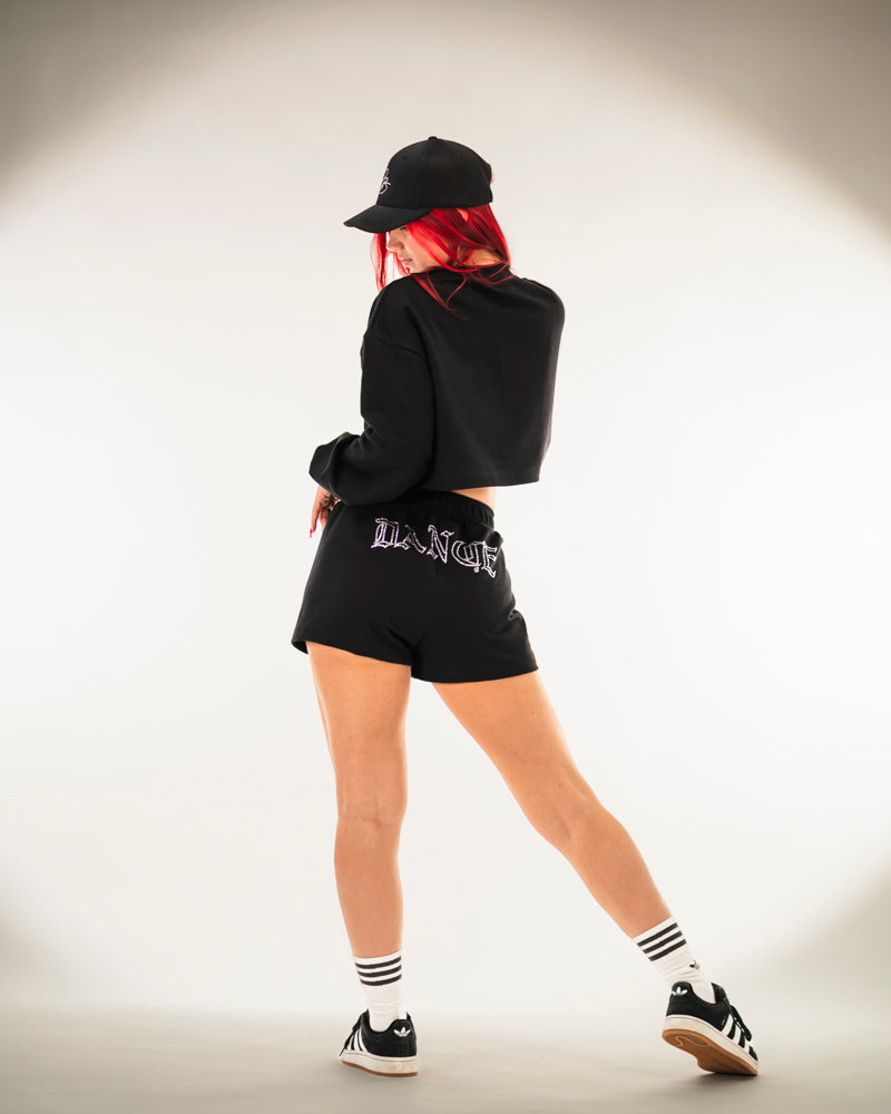 Designed for dancers, these rhinestone sweat shorts are made from lightweight and flexible sweatshirt fabric that feels soft and comfortable against the skin. The relaxed fit and carefully engineered pattern ensure maximum comfort and complete freedom of movement — making these shorts perfect for training, stage performances, and street style alike.