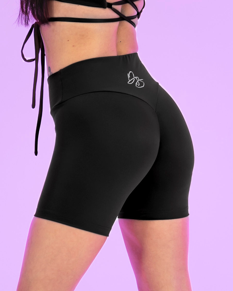 Sculpting Biker Shorts are stylish and comfortable shorts designed for dance, training and everyday wear. Black biker shorts are a wardrobe classic, finished with the DB Signature Rhinestone logo on the back.